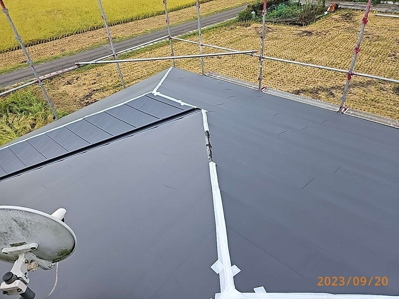 こちらのお客様は元々屋根に太陽光を載せていたため、その除去とカバールーフ工事を行いました。